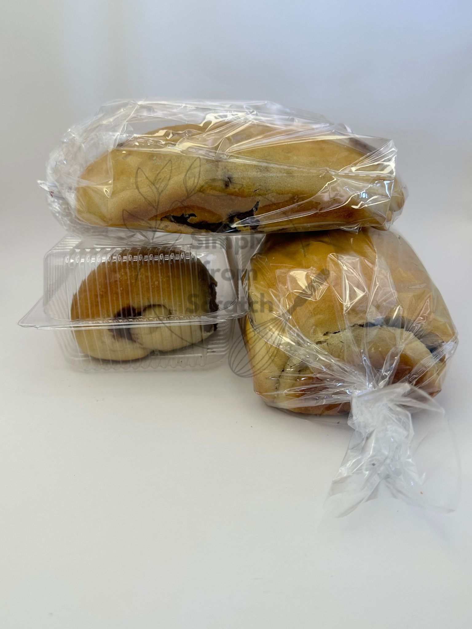 Ingredients: Starter, bread flour, sugar, oil, salt, cream cheese, chocolate chips, dough enhancer, pectin, vitamin C powder