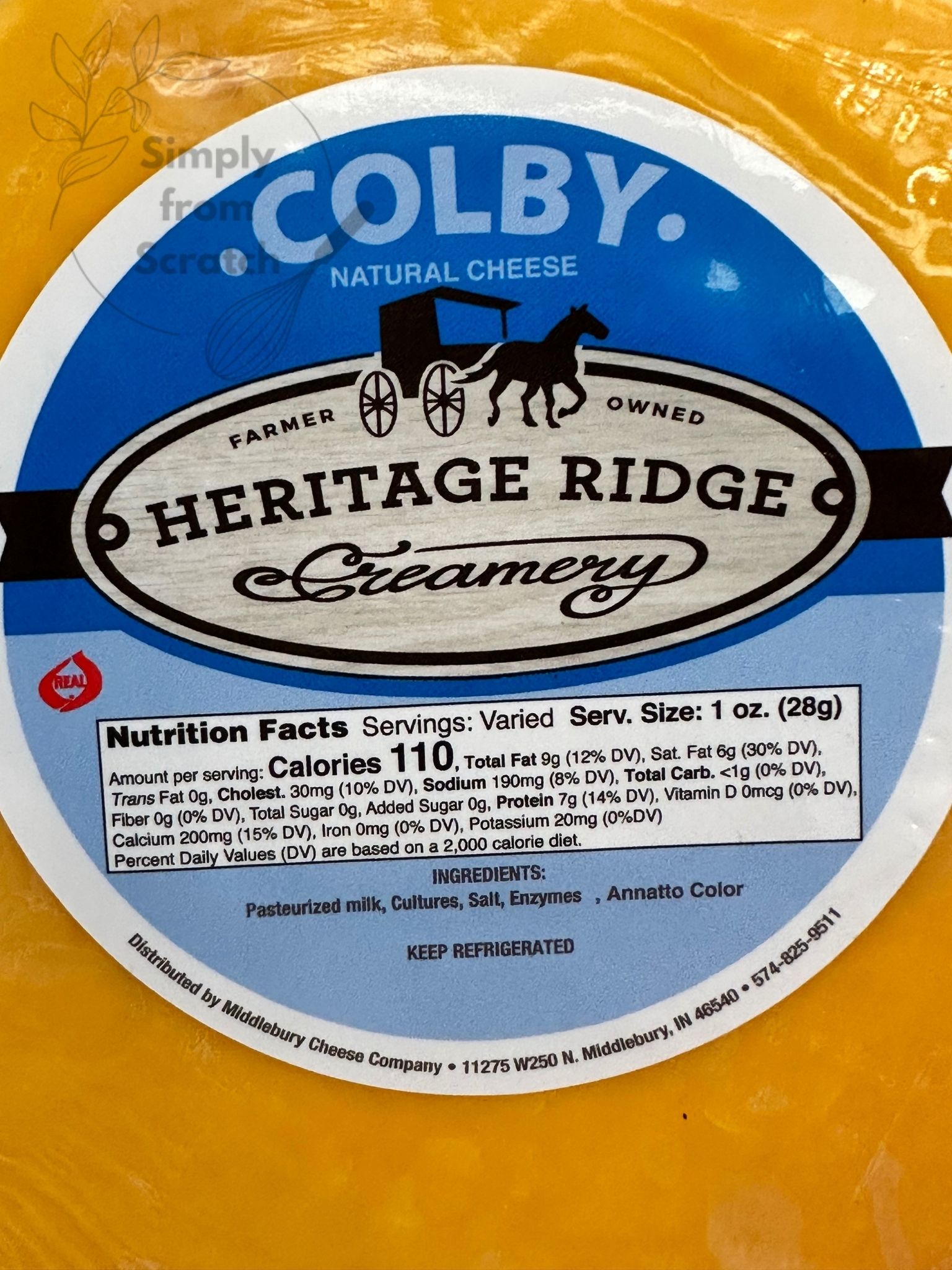 Heritage Ridge Creamery – Colby 1lb Wheel